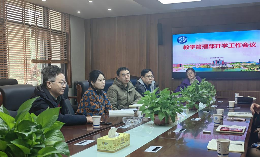 2025年2月23日下午,教学管理部在15教学楼四楼会议室举行部门开学工作会议。继续教育学院院长邹兴平、副院长易国萍出席,教学管理部全体教职员工参加。会议由教学管理部主任张静主持。