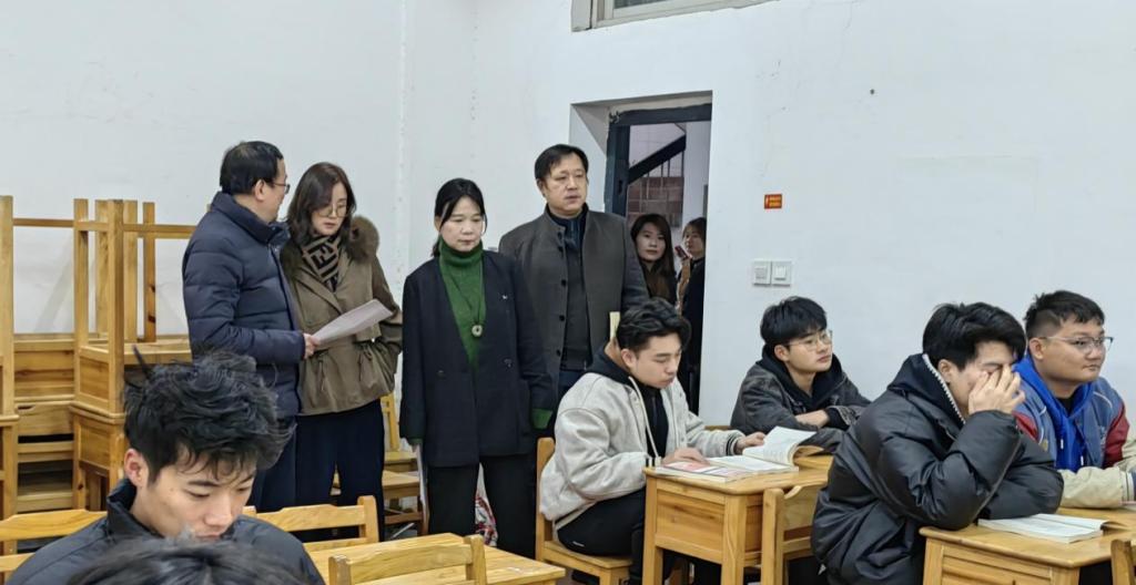 2月24日,学校新学期开学第一天。早上8点,继续教育学院书记刘思强、副院长易国萍、副书记兼副院长任艮丰带队开展教学检查工作,教学管理部、学工及后勤保障部等相关部门负责人及合作机构主要负责人陪同检查。