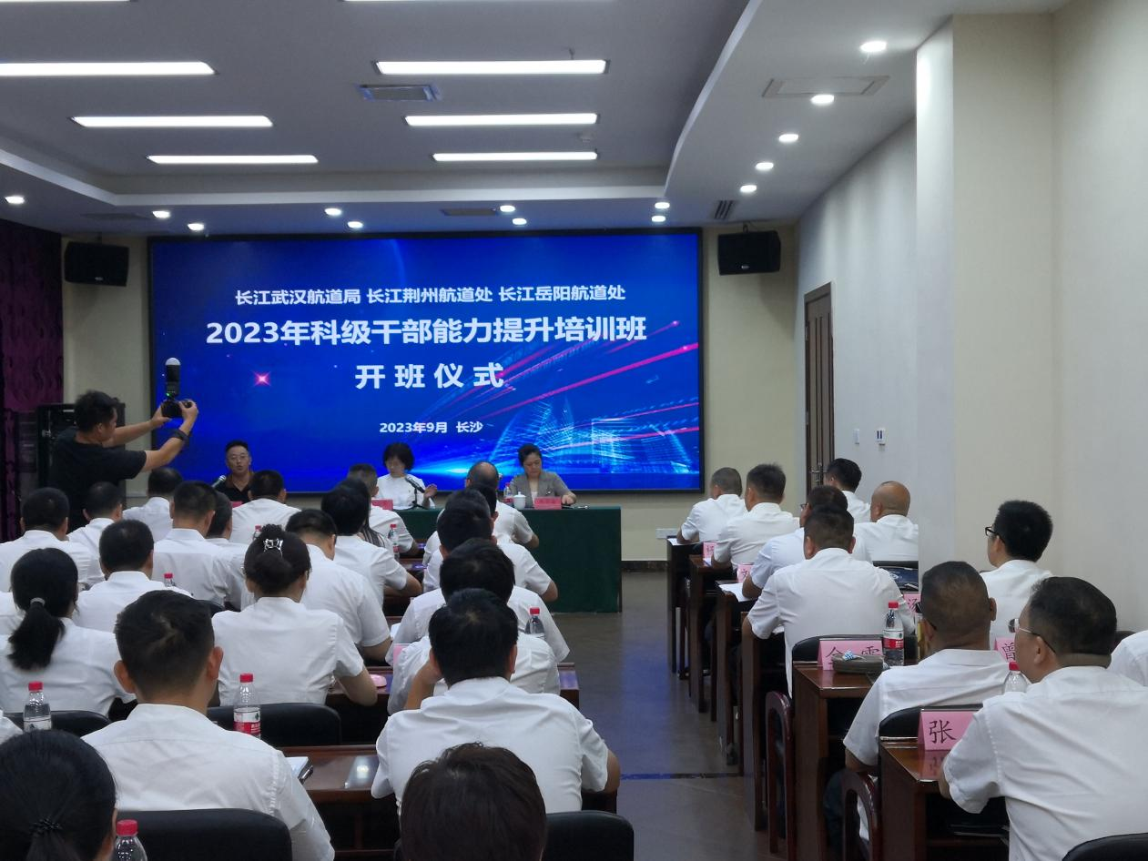 2023年9月11日,由长江武汉航道局、长江荆州航道处、长江岳阳航道处组织,taptap点点体育承办的“长江武汉航道局、长江荆州航道处、长江岳阳航道处2023年度科级干部能力提升培训班”在taptap点点体育云塘校区正式开班。长江武汉航道局书记艾峦苓同志、taptap点点体育继续教育学院院长邹兴平教授、taptap点点体育继续教育学院副院长刘英姿同志参加了本次开班仪式。