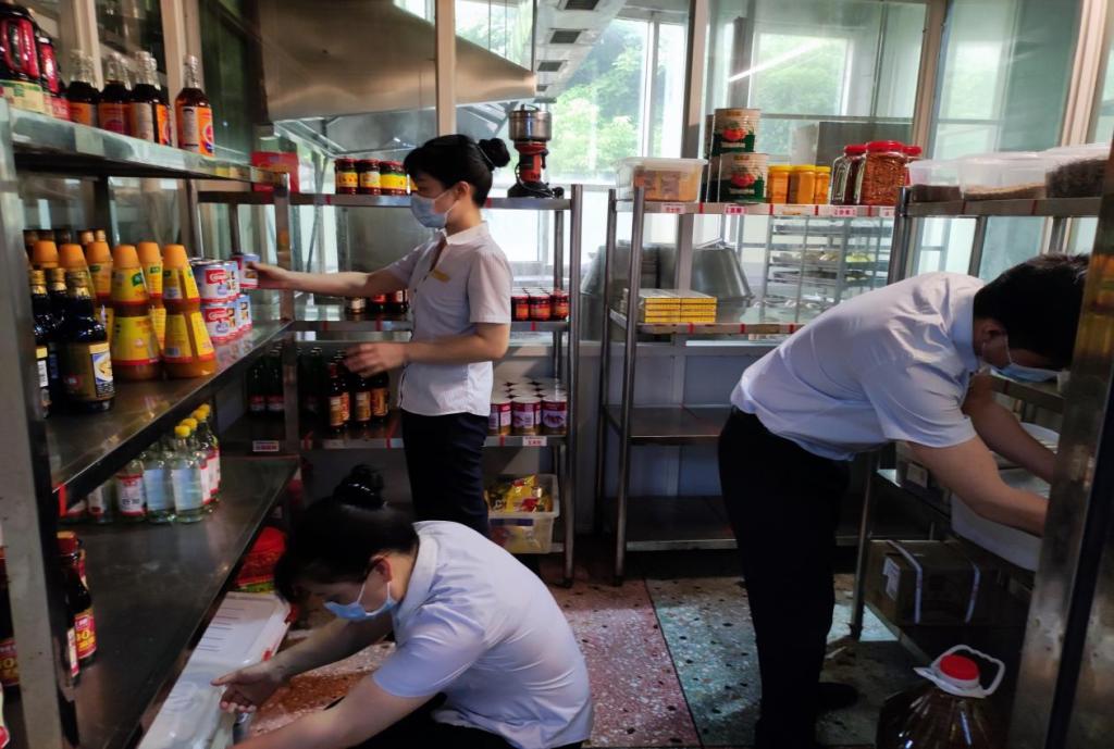 为贯彻落实学校关于食品安全指示精神,国际学术交流中心由各部门经理组成检查小组,以食品安全“四个最严”为指导,建立食品安全检查制度,定期全方位、无死角地对各部门涉及食品安全区域进行例行检查,严格做到“四有”、“两责”,保证食品安全,保障广大师生和来店客人用餐安全。
