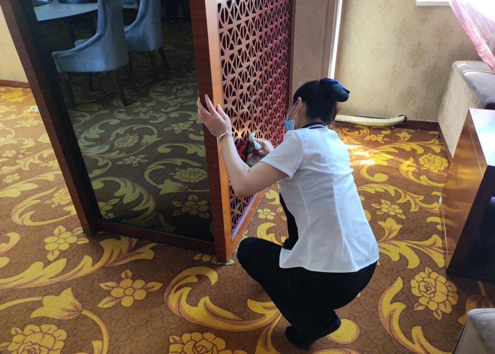 2、组织人员对大会堂进行了一次全方位的卫生大洁,对大会堂外围、过道、玻璃、门窗、地面、桌椅等等彻底清洁并全面消杀,不留卫生死角。