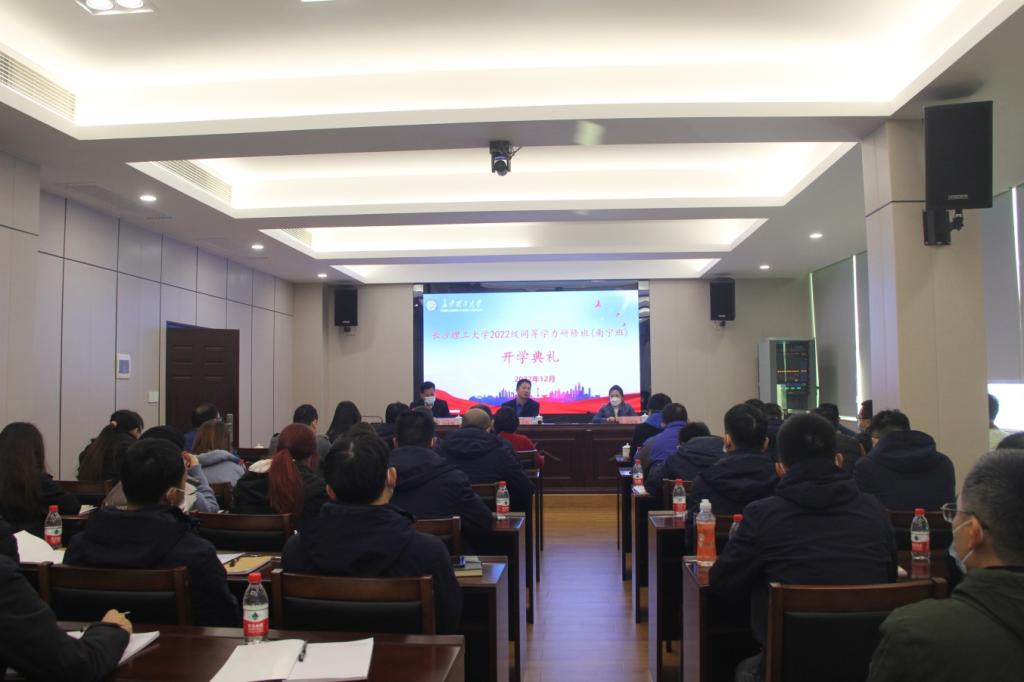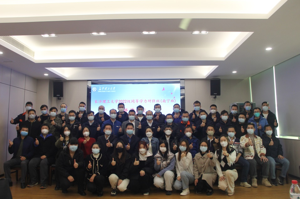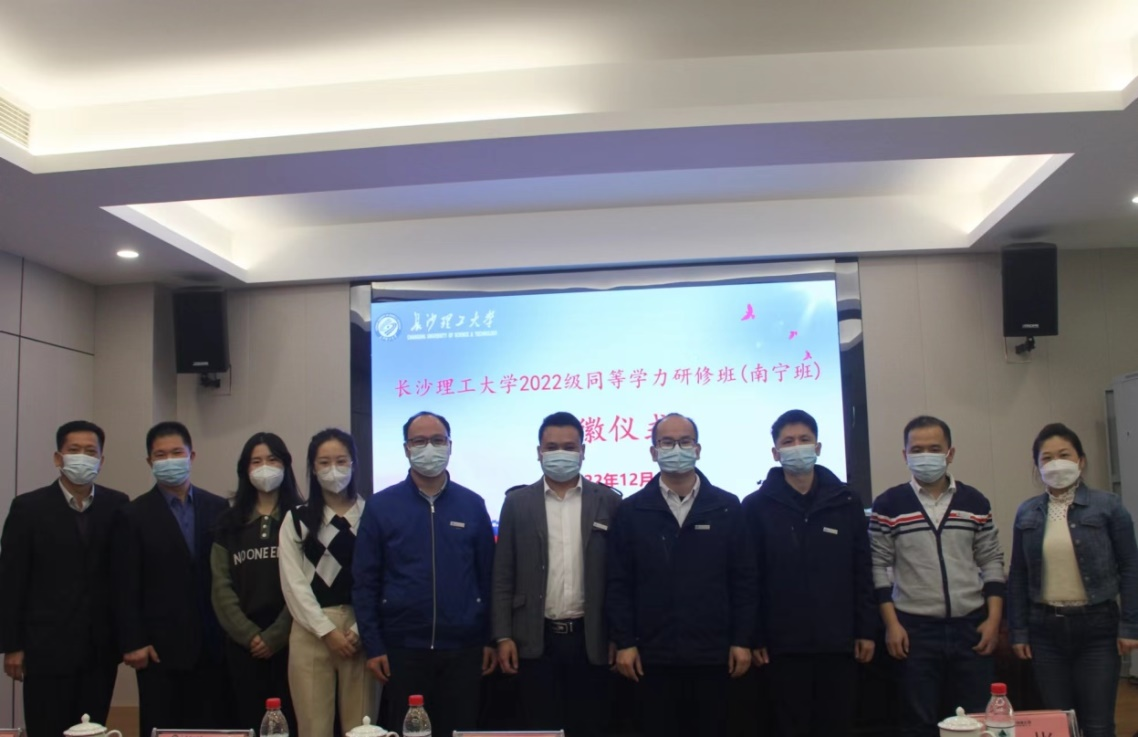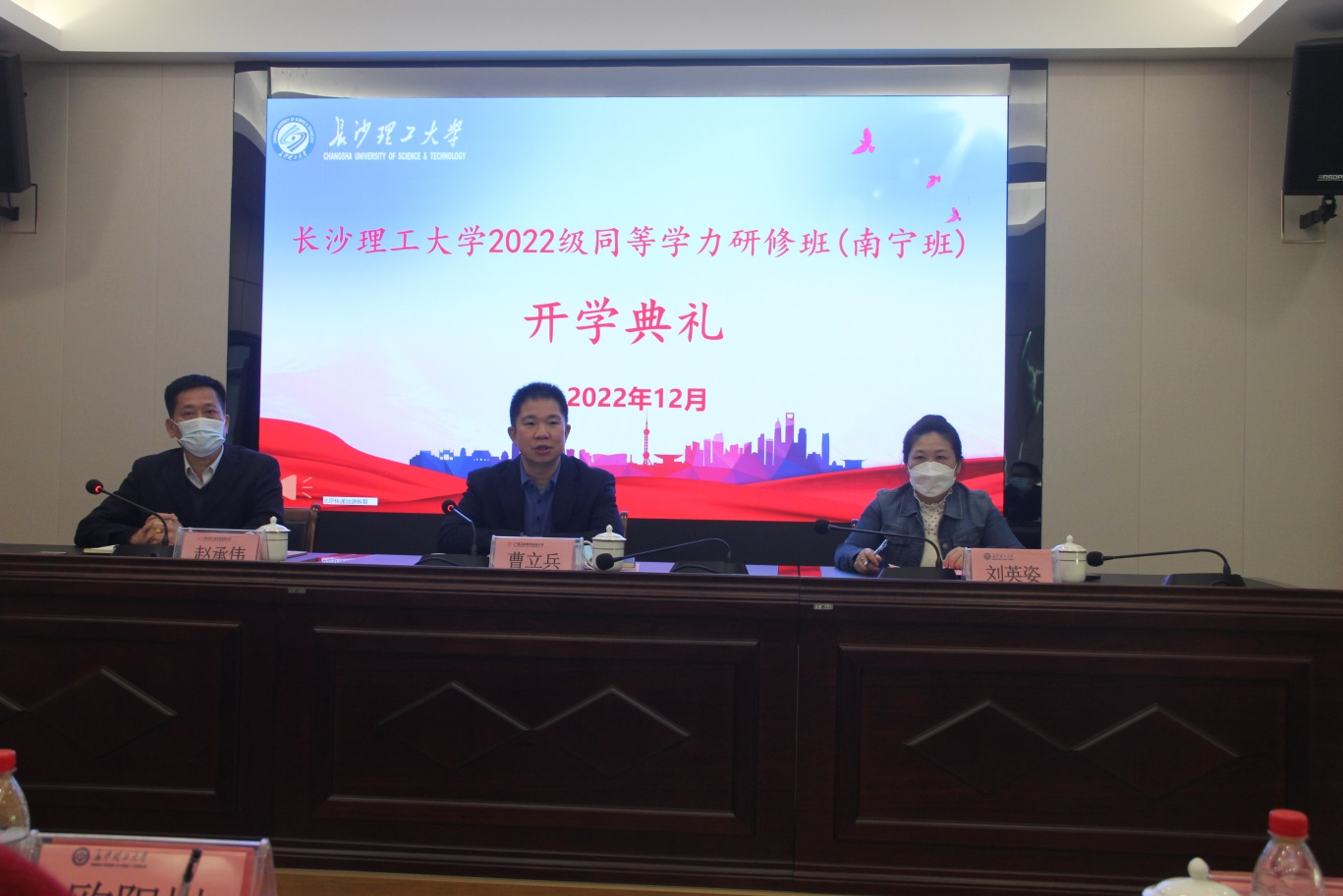 2022年12月15日上午,taptap点点体育2022级同等学力研修班(南宁班)在广西交科工程咨询有限公司举行开学典礼。出席开学典礼的领导有广西交科集团有限公司党委委员、纪委书记曹立兵,taptap点点体育继续教育学院副院长刘英姿,广西交科工程咨询有限公司党支部书记、董事长赵承伟,广西捷通路桥勘察设计有限公司监事凌刚宁,广西交科集团有限公司人力资源部副部长王彬等,本期研修班40多名学员均来自咨询公司各部门、项目办及业主单位。广西交科工程咨询有限公司党支部书记、董事长赵承伟主持开学典礼。