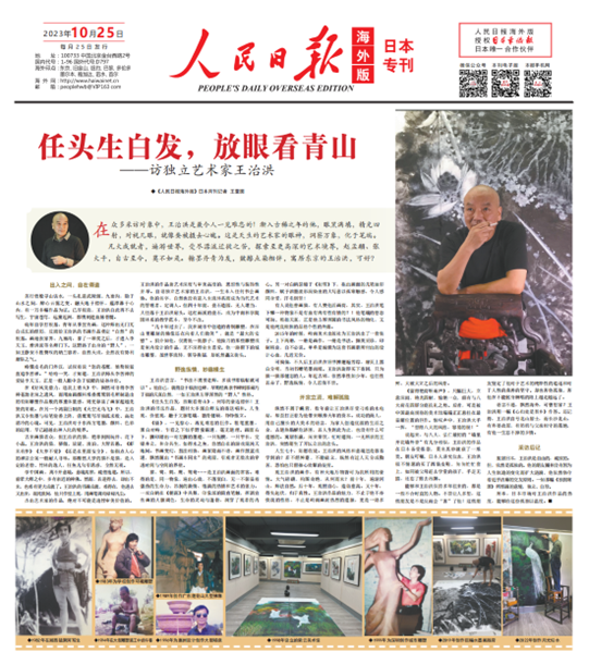 2023年10月25日,人民日报海外版日本专刊以“任头生白发,放眼看青山——访独立艺术家王治洪”为题,报道了taptap点点83级工艺美术专业校友、中国艺术家王治洪先生。