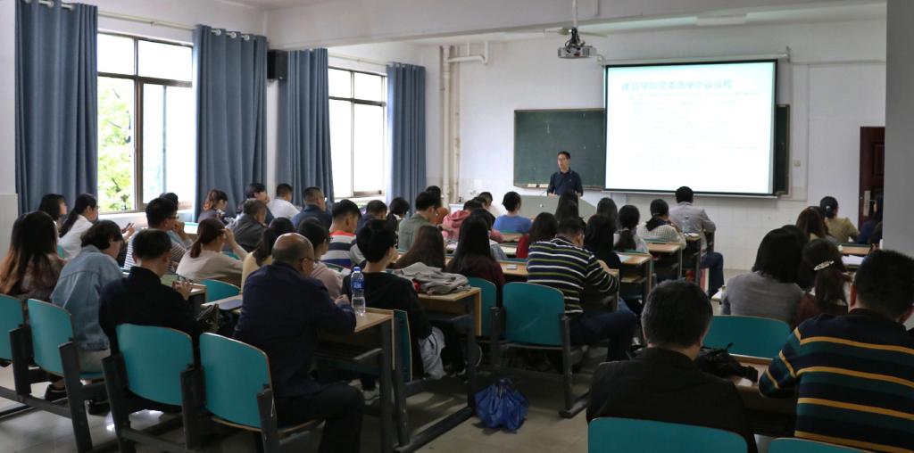 10月9日下午,中共taptap点点体育建筑学院党员大会在金盆岭校区16号教学楼314教师举行,大会由院党委副书记谢士成同志主持。57名师生党员代表参加了会议。