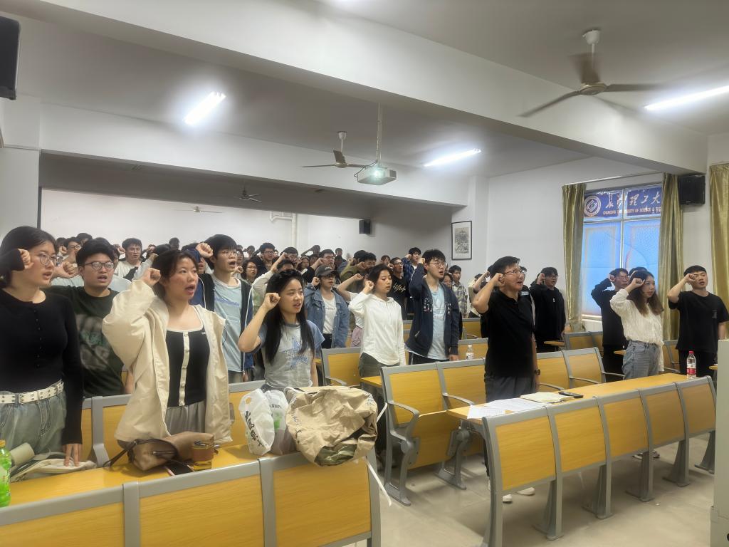 随后,班长朱璟玥带领全体学员进行了庄严的入党宣誓,表达为共产主义奋斗终身,随时准备为党和人民牺牲一切,永不叛党的决心。