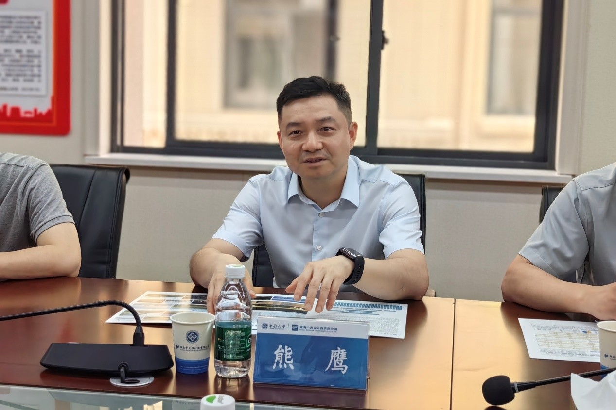 为进一步深化校企合作、强化供需对接,扎实推进“访企拓岗”专项行动与人才培养体制改革,5月22日上午,建筑学院党委书记熊鹰、党委副书记肖义慧、就业专干王宇霖老师一行三人前往湖南中大设计院,开展专项走访调研与合作洽谈工作。此行旨在通过深度交流,精准对接行业需求,为提升人才培养质量、拓宽学生就业渠道奠定坚实基础。湖南中大设计院党总支书记、董事长胡迎新,副总经理龙丽等人参与此次交流。