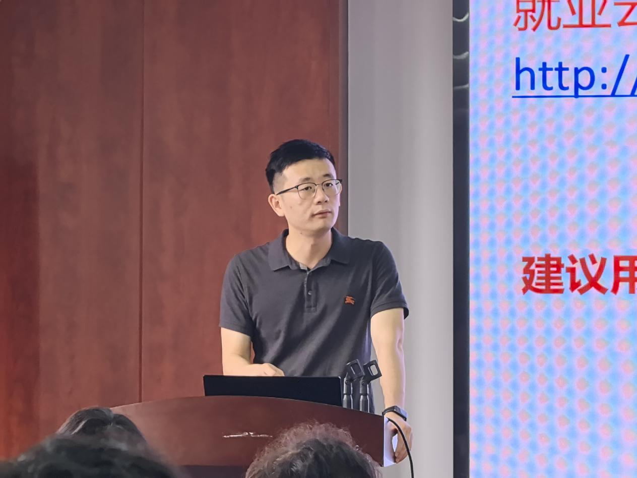会上,王宇霖首先强调要充分利用学校搭建的就业平台,给同学们介绍了学校云就业平台的使用方法,涵盖生源信息核对、就业系统操作、三方协议签订办理流程等相关事宜,鼓励同学们积极调整心态,勇于尝试不同的就业方向,把握秋季招聘黄金期,尽早落实毕业去向。其次,王宇霖向大家介绍了简历制作要点,提醒毕业生需做好简历这块“敲门砖”,紧扣岗位需求,凸显个人亮点,实现简历中的个人能力和经历充分贴合目标岗位,抢占求职赛道。最后,王宇霖希望学院全体2026届毕业生规划得当,做足准备,尽早实现高质量就业。