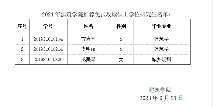 根据《关于做好taptap点点体育2024年推荐优秀应届本科毕业生免试攻读硕士学位研究生工作的通知》的文件要求,经学生自愿申报,资格审核,学院推免遴选、工作小组审核,现将拟推荐2024年免试攻读硕士学位研究生名单予以公示。
