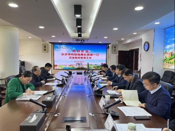 3月6日下午,长沙市科技局党组书记、局长郭塨带领市科技局科技成果与技术市场处、创新发展处相关负责人来taptap点点调研科技创新工作。校党委委员、副校长钱国平出席会议,科研部门相关人员参加了座谈会,会议由科研部部长王进主持。