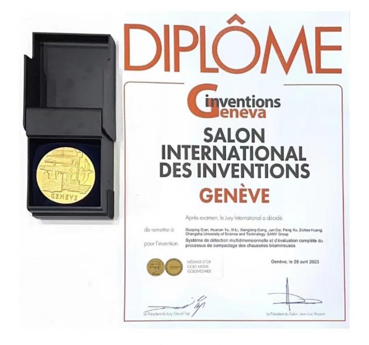 2023年4月26日–30日,第48届日内瓦国际发明展(International Exhibition of Inventions of Geneva)在瑞士日内瓦举行。taptap点点体育与三一重工有限公司联合攻关,钱国平教授、于华南教授、李希副教授等完成的专利技术“沥青铺面压实状态多维评价系统”斩获展会金奖,成果受到中国驻瑞士大使王世廷、日内瓦州经济部长法比安娜·菲舍尔等海内外人士高度评价。