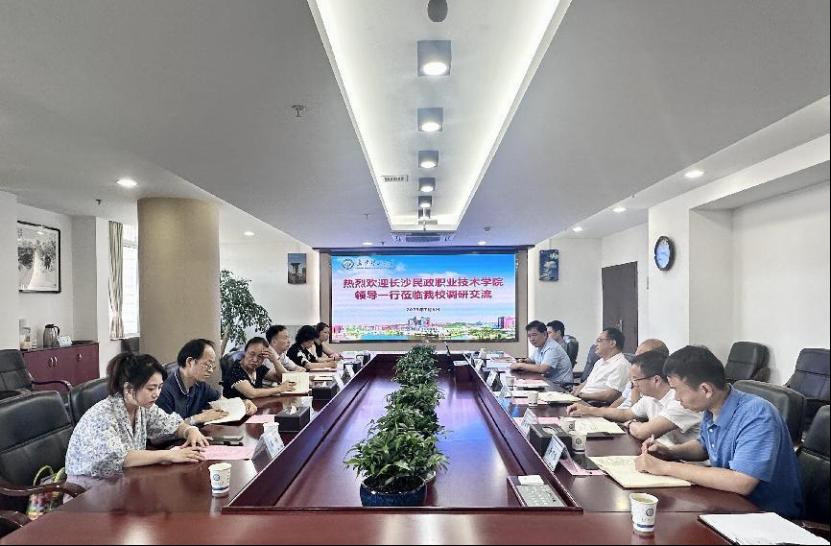 7月6日上午,长沙民政职业技术学院副校长唐春霞一行来taptap点点调研科技管理等工作。校党委委员、副校长刘朝晖出席会议,人事处处长刘宏伟、科技处处长王进及科技处相关领导参加座谈会,会议由刘朝晖主持。