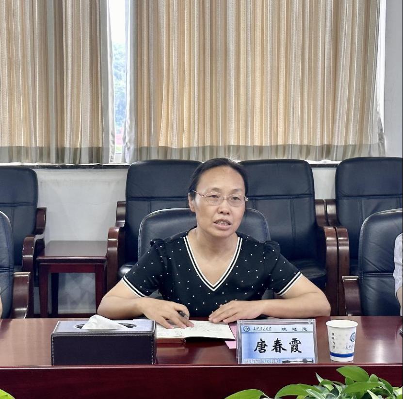 刘朝晖代表学校对唐春霞一行的到来表示热烈欢迎,并简要介绍了学校有关科技、人事等方面的基本情况,以及近年来在科技和服务社会等方面取得的成绩。刘朝晖表示希望借此次交流的契机,双方相互学习,共同进步,共同为推动湖南高等教育高质量发展贡献更大力量。