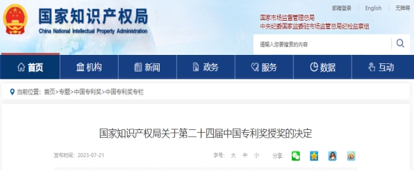 中国专利奖由中国国家知识产权局和世界知识产权组织共同主办,是中国唯一专门对授予专利权的发明创造给予奖励的政府部门奖,也是中国专利领域的最高荣誉。中国专利奖参评专利采用项目推荐方式,以高质量发展为导向,优先推荐基础研究、应用基础研究、突破“卡脖子”技术难题等方面形成的核心专利。同时,评奖标准不仅包含专利文本撰写质量、专利技术先进性和创新高度,也注重其在市场转化过程的运用及效益情况,并且对其保护状况和管理情况提出要求。