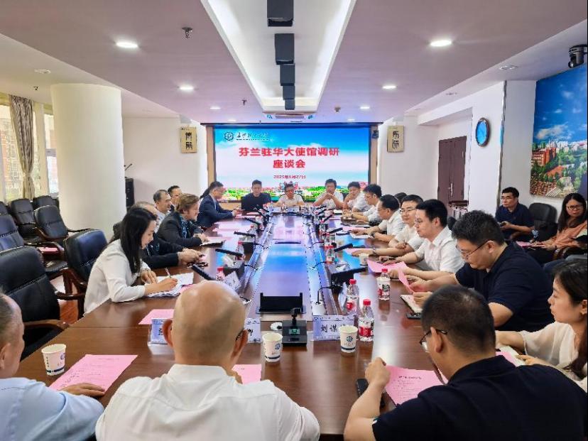 5月27日下午,芬兰驻华大使馆教育和科研参赞欧力一行来taptap点点调研,中国驻芬兰大使馆原负责科技事务正局级参赞袁旭东等省科技厅相关领导陪同,校党委委员、副校长刘朝晖出席会议,美卓、Eco-Living、国网、威胜等企业的负责人,校科技处、对外合作与交流处和相关学院负责人参加了座谈会,会议由科技处处长胡林主持。