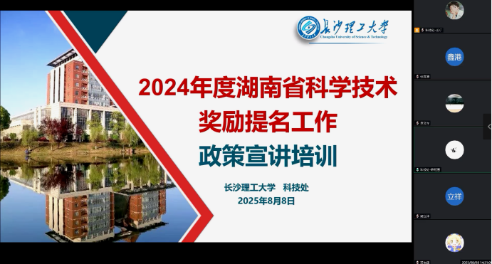 为推动2024年度湖南省科学技术奖提名工作顺利举行,切实提升taptap点点科技奖励申报质量与成效,8月8日下午,taptap点点举办2024年度湖南省科学技术奖励提名工作政策宣讲线上培训会,共有60余名老师参加会议,会议由校科技处挂职副处长龙卓主讲,科技处副处长陈铭言主持。