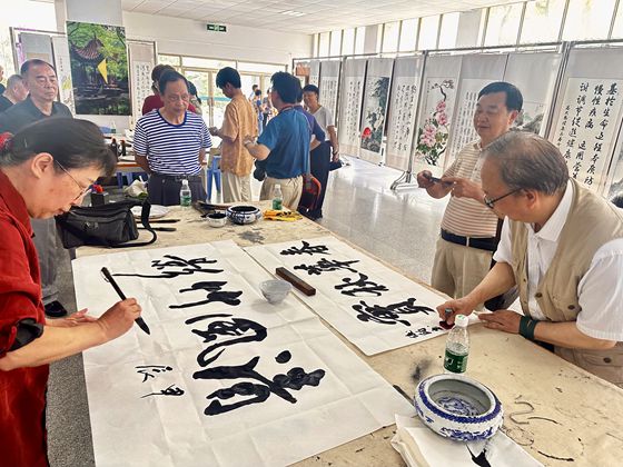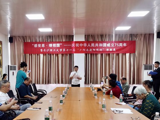 6月16日, “感党恩·颂祖国”——庆祝中华人民共和国成立75周年暨第十一届“夕阳与朝阳同辉”书画展开幕式在金盆岭校区五号教学楼举行。书画展由离退休教职工服务中心、校团委主办,校老年书画协会、墨浪书画协会承办。展览时间至6月21日。