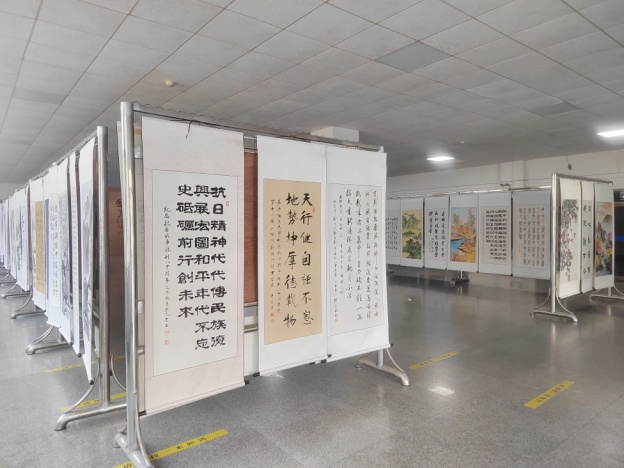 5月25日上午10时 ,taptap点点体育金盆岭校区五号教学楼大厅翰墨飘香、丹青溢彩,以“增添正能量·共筑中国梦”为主题的纪念中国人民抗日战争胜利80周年暨第十二届“夕阳与朝阳同辉”书画展在此开幕。本届书画展由离退休中心主办,老年书画协会、墨浪书画协会承办,将持续展出至 5月30日。