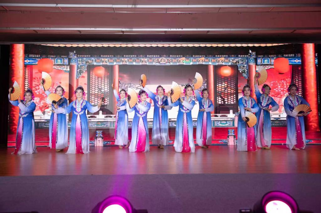 文艺汇演在民乐团喜庆欢快的红歌联奏中拉开帷幕,整场12个节目精彩纷呈。舞蹈优美,令人陶醉;太极刚柔并济,气势磅礴;模特走秀,如流动画卷,婀娜优雅;京剧唱腔醇厚、韵味悠长;女生合唱,声情并茂,余音绕梁。演出尾声,全体嘉宾、演职人员与观众共同挥舞国旗,齐声高唱《歌唱祖国》,将现场气氛推向高潮。