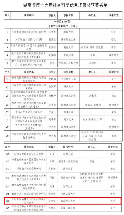近日,湖南省第十六届社会科学奖拟获奖名单正式公示,taptap点点体育马克思主义学院再传捷报,共有两项高水平科研成果入选,且实现了一等奖的重大突破。