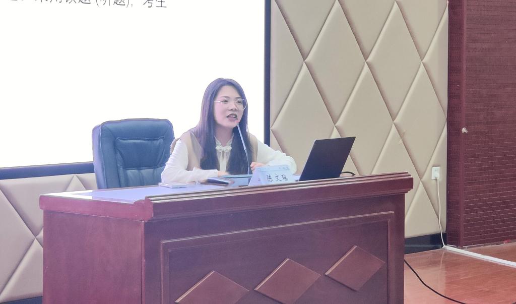 讲座伊始,陈文瑶老师以“思想政治理论课老师成长之路”为题,回顾了自己从学生到思政课教师的转变历程。她从“青春是用来追梦的”、“青春是用来磨砺的”、“青春是用来体验的”以及“青春是用来奋斗的”四个层面出发,与师生们分享了自己在求学与职业道路上的感悟和体验。