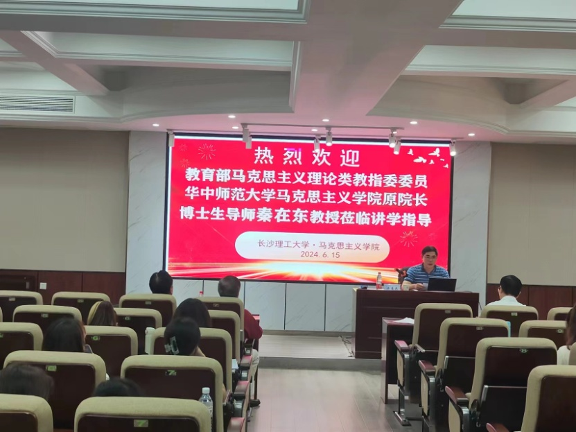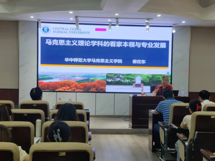 2024年6月15日下午,教育部高校马克思主义理论类专业教指委委员、华中师范大学马克思主义学院原院长、博士生导师秦在东教授应邀来到马克思主义学院,在taptap点点云塘校区文科楼D207报告厅主讲了“马克思主义理论学科的看家本领与专业发展”的学术讲座。本次讲座由我院张明海院长主持,文贵全副院长、王威峰副教授、陈方芳博士等学院教师和研究生近100人聆听讲座,此外,湖南文理学院党委副书记李红革教授也应邀参加了讲座。