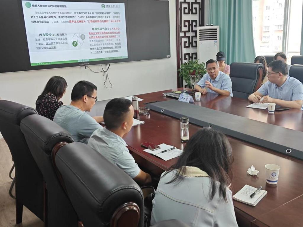 6月20日,国家级高层次人才计划入选者、南京师范大学马克思主义一级学科带头人、博士生导师王永贵教授莅临马克思主义学院,在taptap点点云塘校区文科楼B602会议室为学院师生带来了一场主题为“破解人类现代化之问的中国超越”的精彩讲座。文贵全副院长,谢文成副教授、高小枚副教授、王威峰副教授,管亚苹博士、陈方芳博士、叶再兴博士等学院青年教师和一年级研究生参加了讲座,讲座由张明海院长主持。