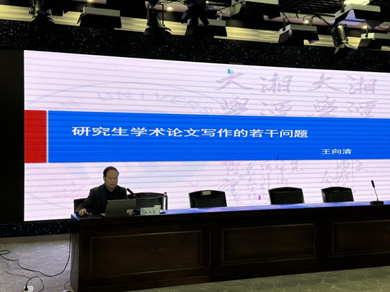 2024年10月29日下午14:30,湘潭大学马克思主义学院二级教授王向清应邀莅临我院,在taptap点点云塘校区文科楼B300报告厅就 “研究生学术论文写作的若干问题”开展了一场精彩的学术报告。本场报告由马克思主义学院副院长郭华主持,学院教师代表及研一、研二研究生参加。