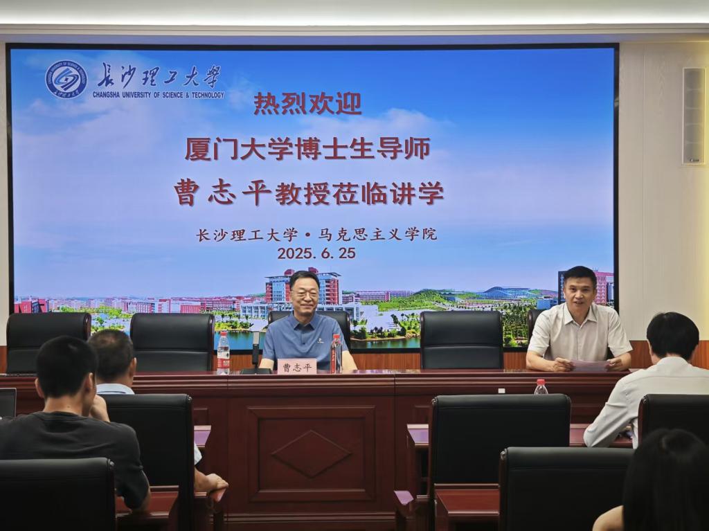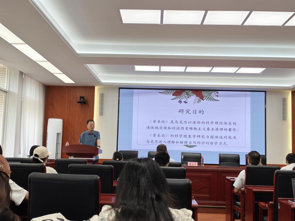 2025年6月25日上午,原教育部高校哲学类专业教指委委员、厦门大学马克思主义学院博士生导师曹志平教授应邀莅临马克思主义学院,在taptap点点云塘校区文科类B501会议室为我院师生带来了一场主题为“《资本论》的科学现象学”的精彩学术讲座。本次讲座由学院党委书记陈万球教授主持,文贵全副院长,教授委员会主任余乃忠教授,章雁超博士、郭蓉博士、向谨汝博士等学院部分教师及23级、24级部分研究生参加了讲座。