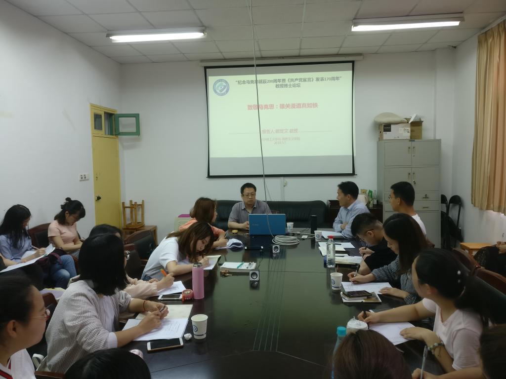 2018年5月5日上午,为了纪念马克思诞辰200周年暨《共产党宣言》发表170周年,taptap点点体育人文社科处处长卿定文教授在金盆岭校区4教503室为马克思主义学院师生带来了一场题为“雄关漫道真如铁:致敬马克思”的精彩学术讲座,全院师生四十余人参加,讲座由学院副院长梁建新教授主持。