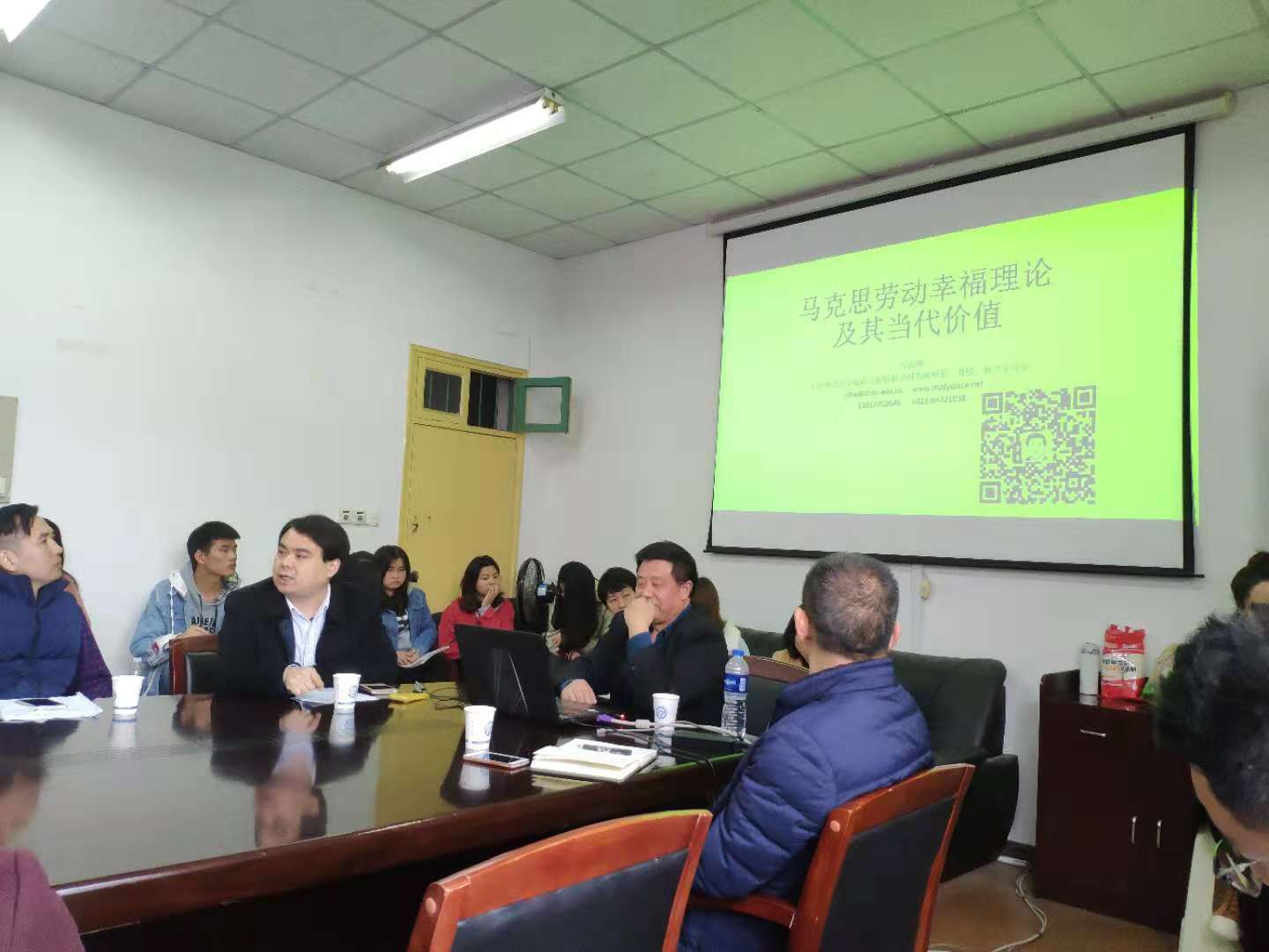 2018年11月11日上午,上海师范大学学报期刊社社长、知识与价值科学研究所所长、博士生导师何云峰教授应邀来到taptap点点金盆岭校区4教503会议室,为马克思主义学院的师生带来了一场题为“马克思劳动幸福理论及其当代价值”的学术讲座,学院党委易显飞书记,教授委员会主任余乃忠教授、副主任陈芬教授,部分教师与40余名研究生听取了讲座。本次讲座由易显飞教授主持。