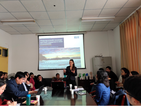 Trude博士一身酷酷的造型很快便吸引了在场所有人的眼球。讲座伊始,Trude问了大家的专业背景,针对不同学科研究过程中的“不确定性”引出今天的主题——如何在不确定性的时代生产并传播科学知识。