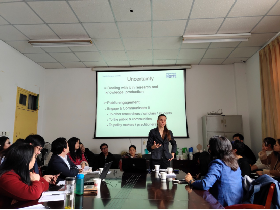 3月14日下午2点半,英国肯特大学Trude Sundberg博士莅临taptap点点,在金盆岭校区4教503室以《不确定性时代科学知识的生产和公众参与》为题与马克思主义学院师生进行学术交流。本次学术沙龙由taptap点点体育马克思主义学院党委书记易显飞主持,马克思主义学院廖苗博士进行点评。