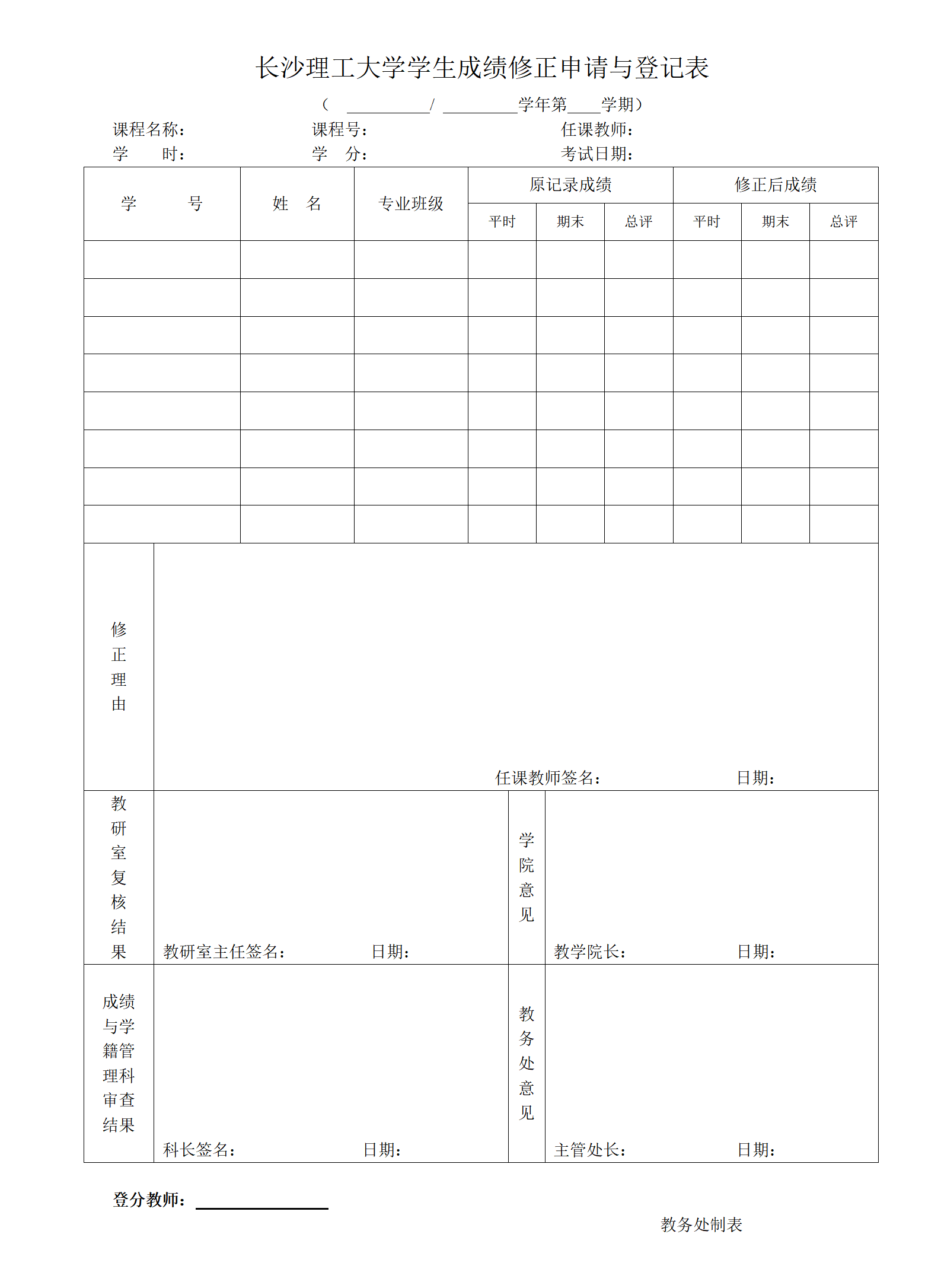 成绩修正申请与登记表 .doc