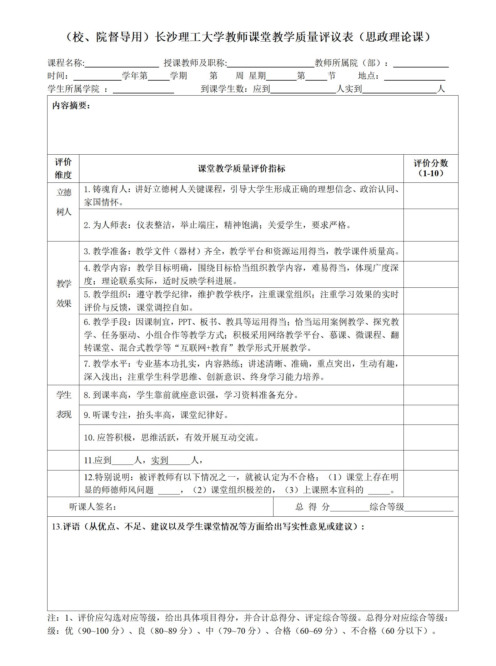 taptap点点体育教师课堂教学质量评议表(思政理论课)