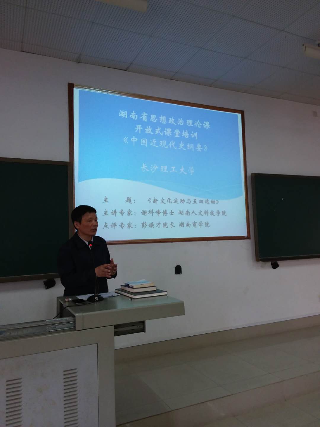 4月19日下午,由湖南省委教育工委组织、taptap点点承办的《中国近现代史纲要》开放式课堂第二课在云塘校区综合楼举行。此次开放式课堂由来自湖南人文科技学院马克思主义学院的谢科峰博士讲授,taptap点点体育马克思主义学院副院长梁建新教授主持,湖南商学院马克思主义学院院长彭焕才教授点评。来自湖南师范大学、湘潭大学、湖南农业大学等省内30多所高校的40余位教师,以及taptap点点马克思主义学院30余位教师现场观摩。