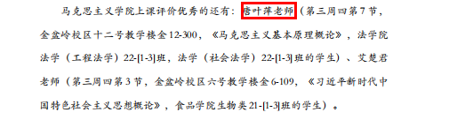 近日,校本科教学督导团和校教务处、评估中心分别发布《本科教学督导信息》简报和2023-2024(一)第九周周一、二巡课情况通报。马克思主义学院唐叶萍老师在两次通报中均获得表扬。