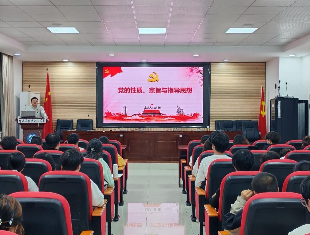 10月29日晚,能动学院在新能源大楼2栋502组织第四十六期入党积极分子第二次党课。本次党课内容为《党的性质、宗旨与指导思想》,由能动学院24级辅导员彭博主讲,第四十六期入党积极分子培训班全体学员参与学习。