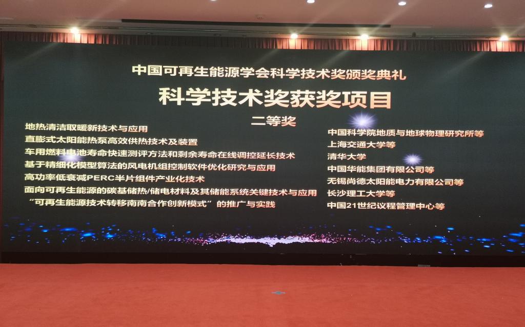 2020922日,中国可再生能源学会在云南昆明举办了科学技术奖颁奖典礼,我院新能源与储能团队李传常教授主持完成的成果面向可再生能源的碳基储热/储电材料及其储能系统关键技术与应用荣获科技进步二等奖,第一完成人李传常代表成果完成团队参加颁奖典礼。