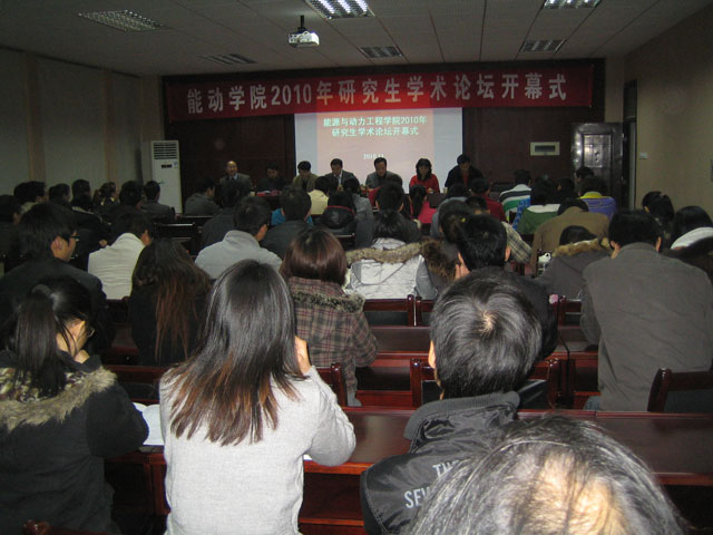 为配合学校研究生博力论坛活动的开展,给研究生开阔学术视野,交流学术思想,启迪创新思维,培养科学精神,提升学术道德,提高创新能力提供一个高水平的学术交流平台,11月15日,能动学院2010年研究生学术论坛开幕式在云塘校区工科一号楼能动学院学术报告厅举行。学校研究生部主任曾胜教授、教务处处长李录平教授、能动学院院领导、部分导师、全体研究生共100多人参加了开幕式。开幕式还特邀了湖南省电力设计院张力副院长、中国大唐湖南分公司核电部刘峰主任等有关单位专家出席。