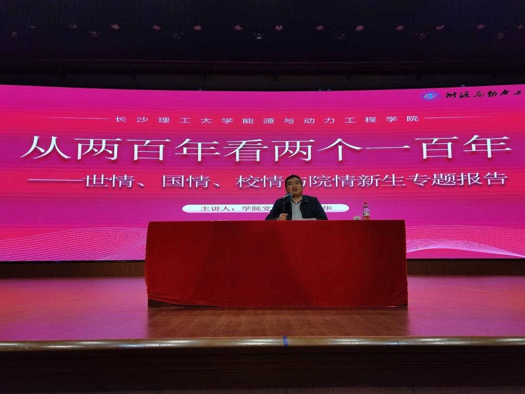 报告横跨两百年的历史,成华分阶段介绍了中华民族的屈辱史和奋斗史,他指出,在场的同学出生、成长于中国最安定、发展最迅速的时期,引导大家即便是在安稳的岁月中也要加强忧患意识与斗争精神。接着,成华为全体新生介绍taptap点点体育的历史,这是一所承载着时代责任、国家嘱托,伴随着共和国的发展共同成长的一所高校,也为大家讲述了学校发展的重要历史意义和使命责任。成华重点介绍了学院的发展历史,以及杰出校友在祖国一线前沿奋斗的事迹,发出“每一个能动人都应该找到自己的使命与价值,投入火热的能源建设事业,将历史与责任延续,把红色的江山建设得更加美丽”的号召,激励每一位能动人始终以国家“双碳”目标为己任,为构建绿色中国、低碳中国、美丽中国贡献力量。