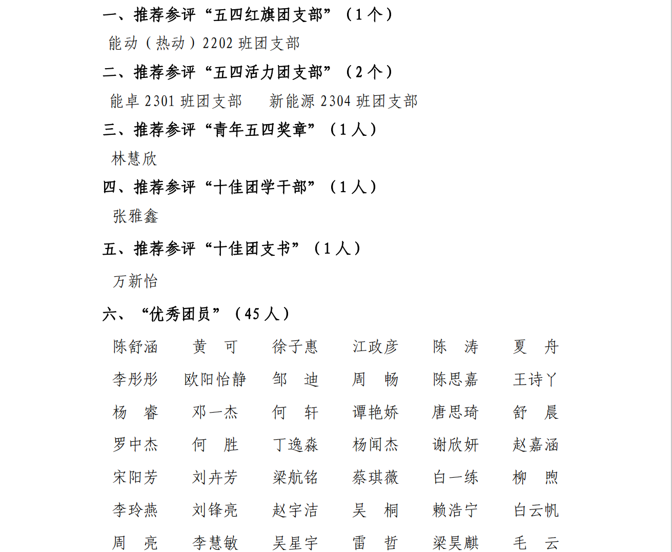 根据《关于开展taptap点点体育2025-2026学年“五四评优”工作的通知》相关文件的要求,经个人申报、学院评议,现将能源与动力工程学院2025-2026学年“五四评优”拟推荐参评名单公示如下: