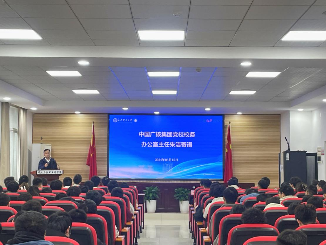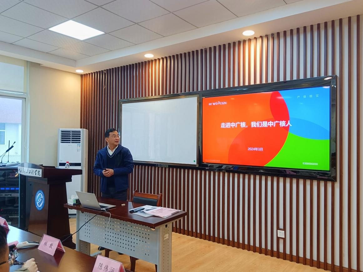 朱洁向联培班深情寄语。他通过“四个感谢、三个好、三个分”,高度评价了长理在人才培养方面的卓越成效,肯定了双方合作的广阔前景,并表示中广核将全力支持联培班工作,持续提供实践平台和资源保障,助力学员成长。随后他为联培班学员授课,用丰富的行业经验和前瞻性的视野,引领大家深入了解我国能源发展形势以及核电产业的最新动态,为学员们打开了一扇洞察未来、探索未知的大门。