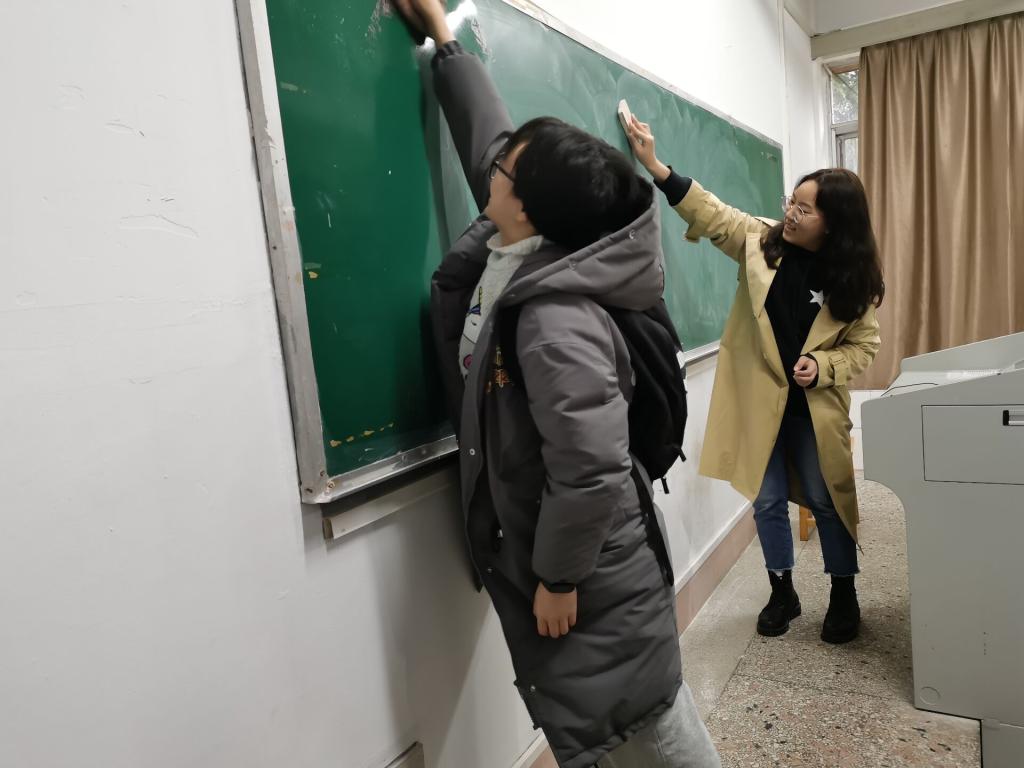 3月5日中午,院青志团组织了19名志愿者在taptap点点体育金盆岭校区13号教学楼前集合,对13号教学楼一层进行清扫。青志团成员将19名志愿者进行了简单分组,确保每一个教室都有至少3名同学在清扫。明确各自的任务后,志愿者们迅速开始行动。部分桌椅下的地面有很多细小的垃圾,清洁空间又比较狭小,志愿者们弯着腰仔细清扫,有的甚至钻到底下去,不放过每一个缝隙。