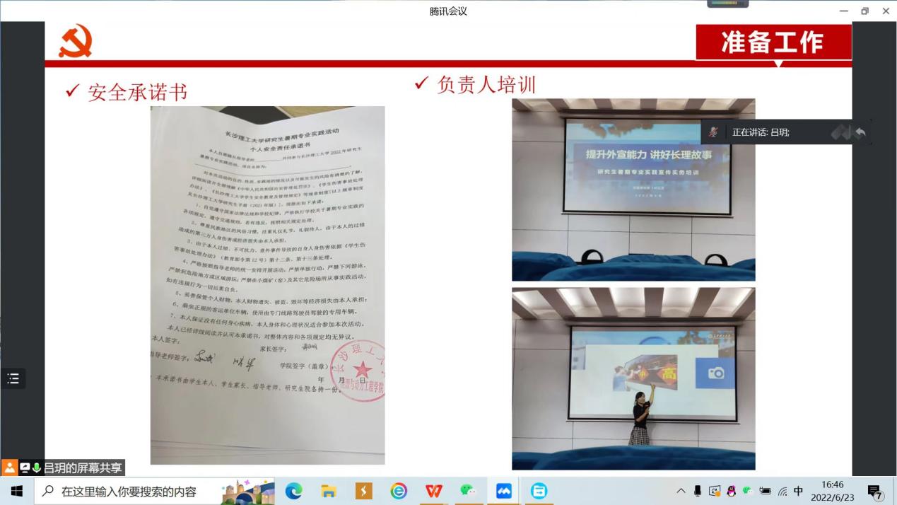 会议上,吕玥从项目介绍、准备工作、阶段计划和结项要求四个部分做了汇报,其中包含队服制定、安全承诺书和负责人培训等细节,并提出下一阶段实践团队的工作安排。团队指导老师赵斌曾作为中组部团中央第17、18批援藏博士团成员,在藏3年8个月零八天,援藏结束后指导taptap点点能动学院、电气学院共4名研究生从事西藏太阳能利用方向的专业实践。为保证此次实践安全、务实、高效地顺利进行,他从自身经历出发,着重强调了解民风民情、做好防护等前期筹备工作的重要性,组织成员明确分工,在调查研究中发现问题、对照检查、深化感悟、寻找措施。他也鼓励同学们把调查研究的结果转化为科学决策的有力依据,形成求真务实的调查研究之风。