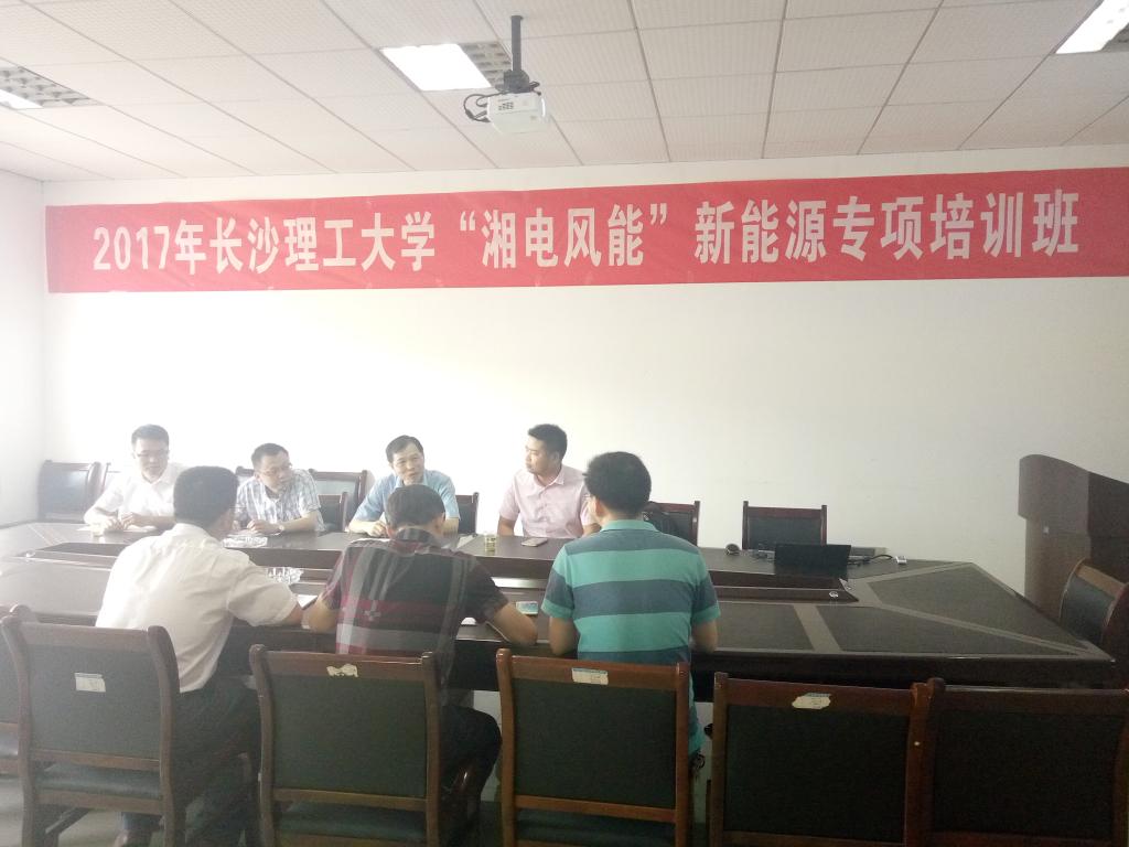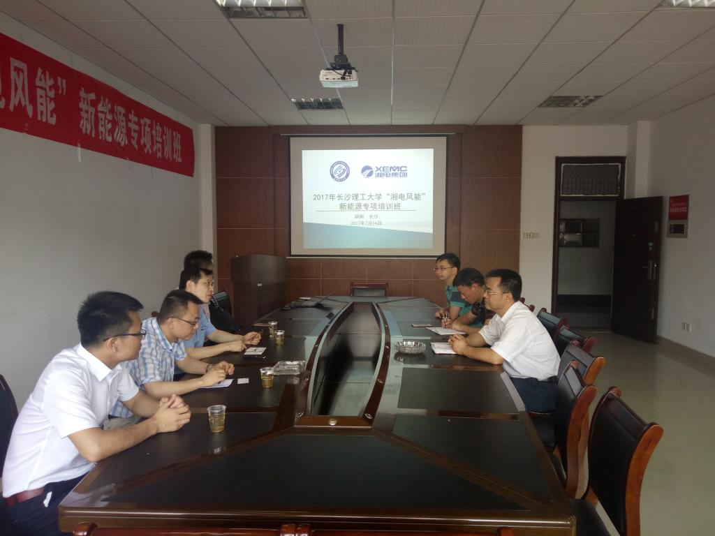 2017年7月14日,2017年taptap点点体育“湘电风能”新能源专项培训班开班仪式在我院工科一号楼A422室举行,湘电风能龙辛技术副总、吴晓鹏副院长、刘自强副部长、王成泽工程师、我院陈荐院长、田向阳副书记、唐明珠副主任及新能源科学与工程专业的部分本科生参加开班仪式。taptap点点体育“湘电风能”新能源专项培训班目的是湘电风能选拔2014级新能源专业本科生参加风资源评估工程师培训,实现学校人才培养和企业人才需求无缝对接。