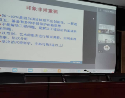 邵教授从“立项依据”评审关注点、“立项依据”实例、“研究内容”评审关注点、“研究方案”评审关注点、“技术方案可行性”评审关注点、“研究基础、创新点与摘要”等6个方面做了精彩的讲解,结合实例全要素地剖析了基金申报的注意事项和写作原则,尤其在报告的最后强调了创新的重要性,指出50%~60%基金申报失败的原因就在于项目体现不出创新性,一新遮百丑,基金有很多种手段保护创新思想科研研究要解决工程背后的基础科学问题。撰写基金本子时要以苛刻、艺术的眼光进行版面调整,实现条理清晰,层次分明更要坚决消灭错别字,字斟句酌5遍以上邵教授的报告让在场的师生们深受启发,受到了现场的一致好评,激起了交流讨论的热潮。