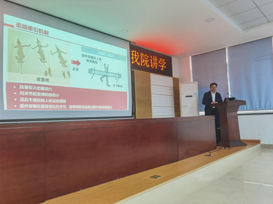 报告会上,邹教授结合自己小时候的亲身经历,讲述了自己研究人体运动能量采集的灵感来源。他通过对皮影戏中皮影小人运动的观察得到启发,结合柔顺牵引机制,提出了共存—协同人体运动能量采集的理论方法创新;在关键技术的创新上,提出了机械调制方法体系;在集成设计的创新上,提出了人体辅助系统设计。邹教授还将理论运用于实际,绘声绘色地描述了自己进行相关实验的过程,给在场的师生们留下了深刻的印象。在随后的提问环节中,邹教授还亲切地回答了老师和同学们的提问。邹教授赞扬了学生们善于思考,提出有水平的问题,并深入浅出地进行了分析与解释。在报告会的最后,邹教授和在座的师生们分享了自己的艰苦奋斗历程,并激励在座的各位同学,语重心长地告诫后辈们要努力拼搏奋进,向前看,终会学有所成,不负青春,越努力,越幸运。