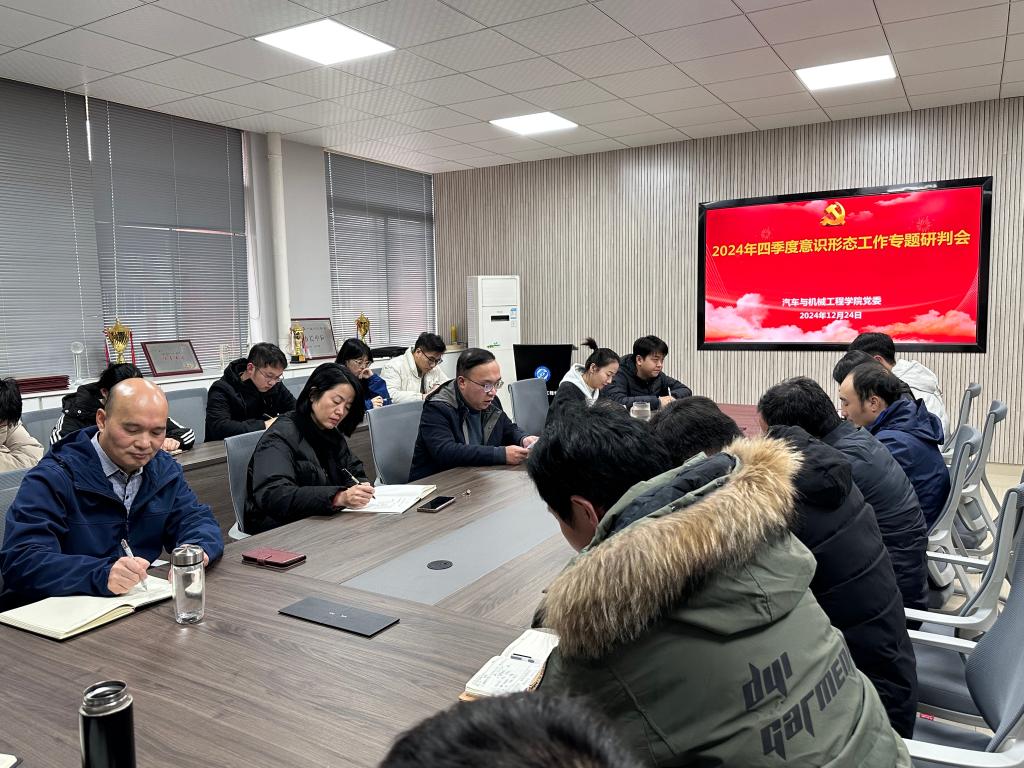 12月24日下午,汽机学院党委在工一B411会议室召开2024年度四季度意识形态工作专题研判会议。会议由学院党委书记孔伟红主持,学院领导班子成员、专职组织员、师生党支部书记、全体辅导员参会。