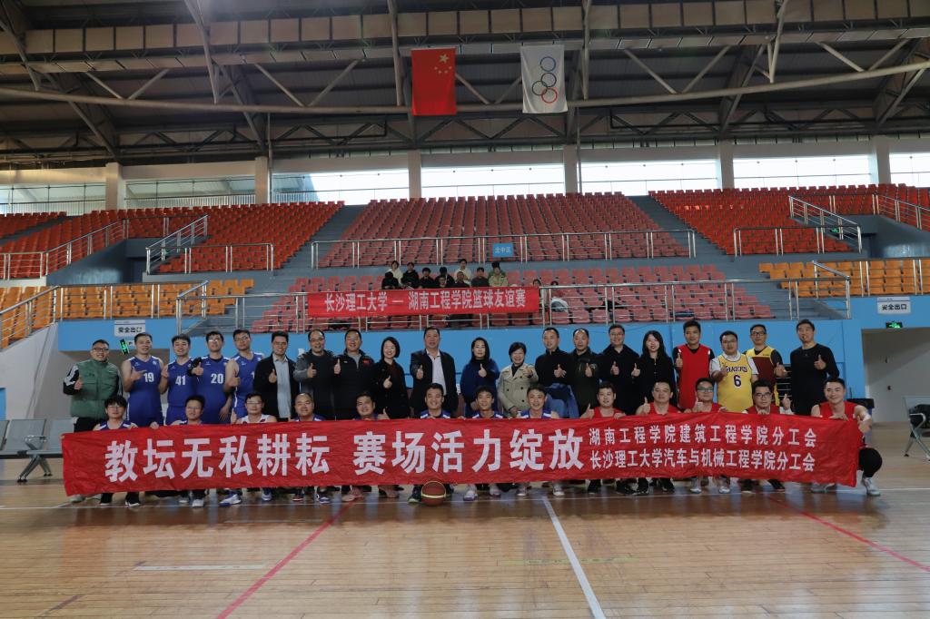 11月29日下午,taptap点点汽机学院教职工篮球队与湖南工程学院建工学院教职工篮球队在云塘校区体育馆举行了一场篮球友谊赛。taptap点点党委副书记、工会主席方琼,湖南工程学院党委委员、纪委书记齐路良,及两校工会、相关学院负责人等在现场观赛。运动员们斗志昂扬、激情四射,为观众呈现了一场精彩对决。