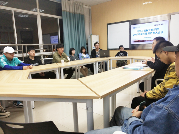 2020年10月29日18时30分,在云塘校区工科一号楼B414举行了汽车与机械工程学院2020年学生社团负责人会议。参加本次会议的有汽机学院团委书记李特超老师和taptap点点体育爱心书屋协会、心星志愿者协会、魔术协会、SAC神族曳舞社、沸焰音乐社的会长、副会长以及团支书。